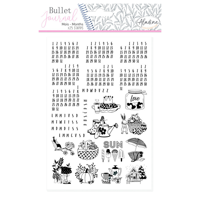 Aladine -leimasinsetti: Bullet Journal Months - kuukaudet