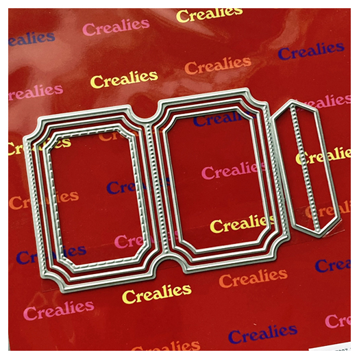 Die set by Crealies includes six dies, thin metal. Size of the biggest one approx. 9 x 6,3 cm.