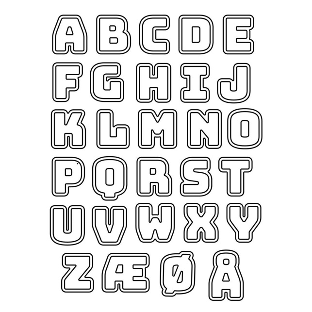 Alphabet and shadow dies, thin metal. Heights of the letters approx. 2 cm and shadows approx. 2,4 cm.
