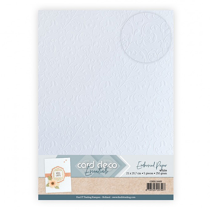Kohokuvioitu kartonki A4, 5 arkkia: Vine Flourish