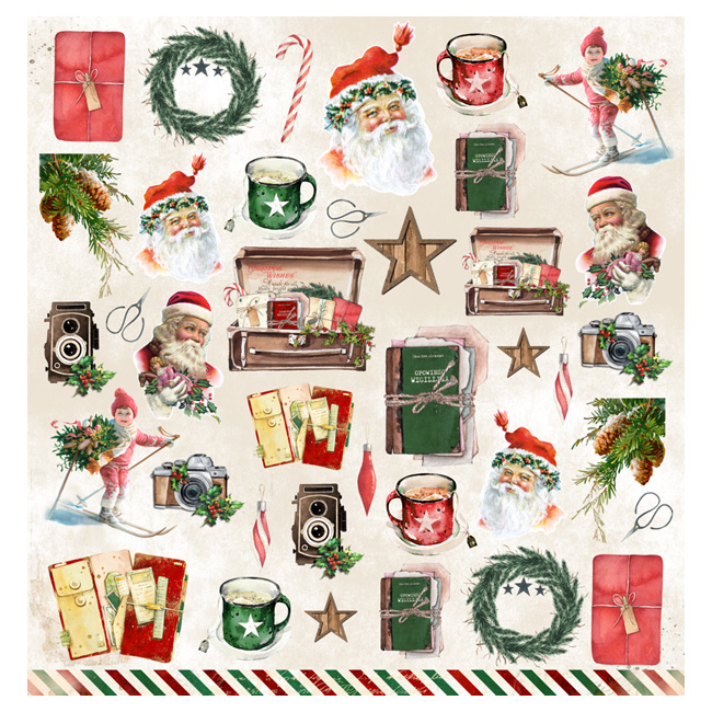 Kaksipuolinen kuviopaperiarkki, koko 12x12 eli n. 30,5 x 30,5cm. Vahvuus 250g.