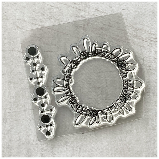 Kirkkaita leimasimia (kaksi erillistä) eli tarttuvat sellaisenaan akryylipalikkaan. Koot n. 6,5 x 6,5 cm ja 6,7 x 1,5 cm.