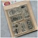 Setissä on useita erillisiä leimasimia, kirkkaita leimasimia eli tarttuvat sellaisenaan akryylipalikkaan. Setin koko n. 11 x 9 cm.