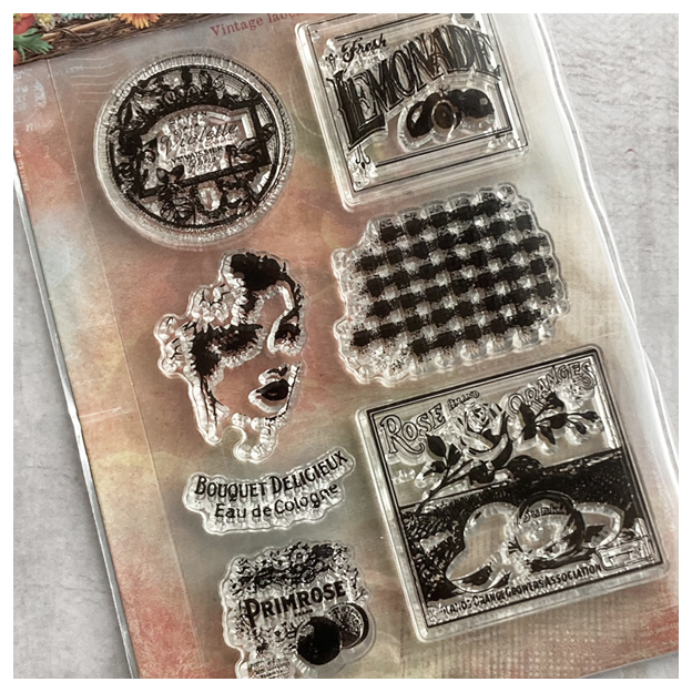 Leimasinsetissä on useita erillisiä leimasimia. Kirkkaita leimasimia eli tarttuvat akryylipalikkaan sellaisenaan.