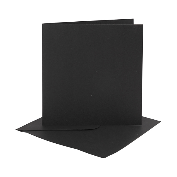 Square cards and envelopes, black, 4 pcs