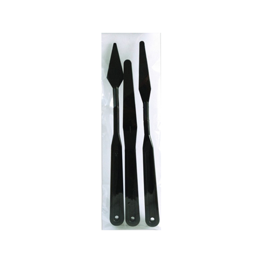Paketti sisältää kolme mustaa muovista palettiveistä, kaikki erilaisia.