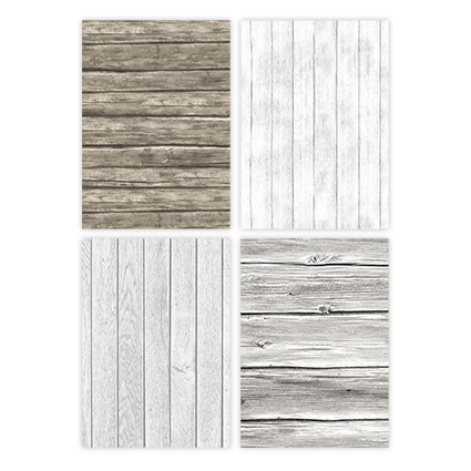 Pakkauksessa on 20 arkkia (4 erilaista, jokaista 5 kpl). Koko A6 eli n.14,8 x 10,5cm, vahvuus 230g.