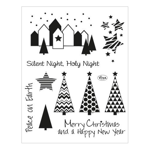Leimasinsetissä on useita erillisiä leimasimia. Kirkkaita silikonileimasimia eli tarttuvat akryylipalikkaan sellaisenaan.