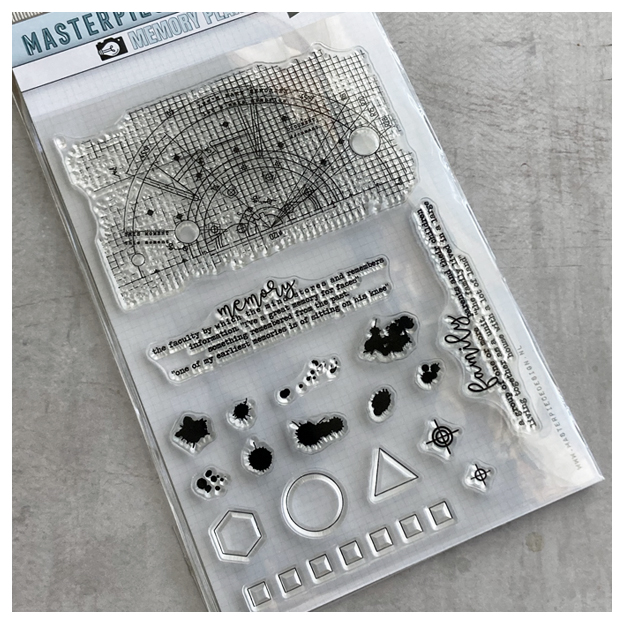 Stamp set A6, Masterpiece: Blueprint Splatters