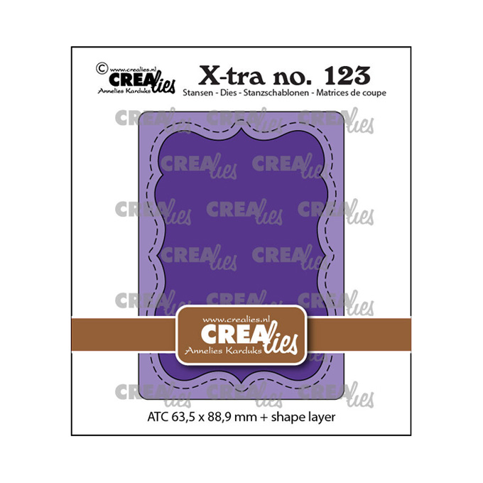 Crealiesin stanssisetissä on kaksi erikokoista ATC -stanssia, ohutta metallia. Suurimman koko n. 6,4 x 8,9 cm. Sopii käytettäväksi yleisimpien stanssauslaitteiden kanssa, esim. Big Shot.