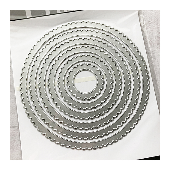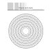 Stanssisetti sisältää kuusi erillistä ympyrästanssia, joissa piparireunat, ohutta metallia. Isoimman halk. n. 14 cm, reunoissa pistekuviointi.