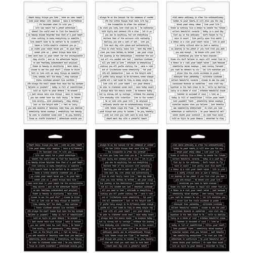 Size of the pad approx. 23x11,5cm. Two sheets of three different texts, white and black.