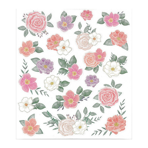 Yksi n. 15 x 16 cm kokoinen tarra-arkki. Tarroissa kimalletta.