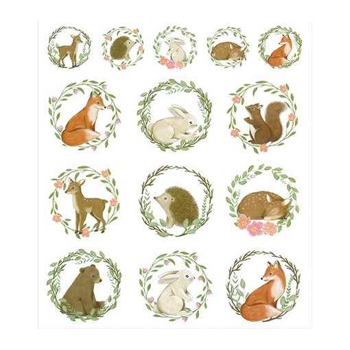 Yksi n. 15 x 16 cm kokoinen tarra-arkki. Tarroissa hieman kimalletta.