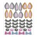 Yksi n. 15 x 16 cm kokoinen tarra-arkki, tarroissa hieman kimalletta.