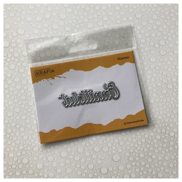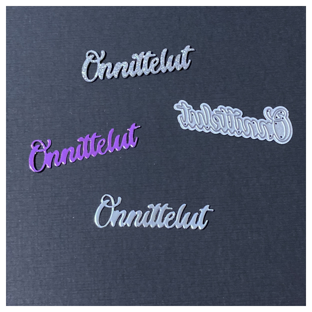 Includes one finnish text die, thin metal. Size approx. 5,9 x 1,7 cm.