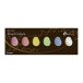 Ihanat helmiäisväriset vesivärit, kuusi eri väriä, jotka näkyvät myös mustalla pohjalla.